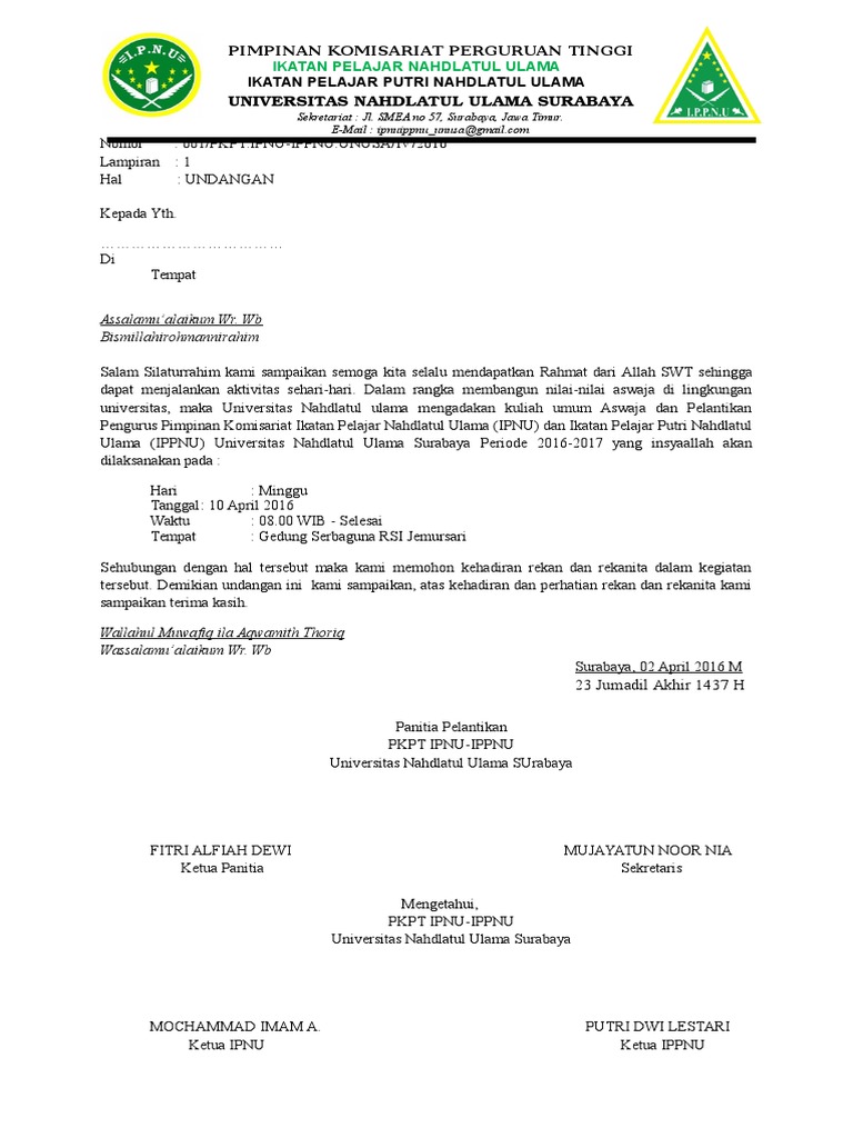 Surat tugas guru pun tidak berbeda jauh dengan surat tugas lainnya. Surat tugas ipnu contoh surat undangan ipnu ippnu pdf sample surat undangan surat tugas karyawan adalah surat tugas yang diberikan oleh atasan kepada karyawan tutorial atau panduan. Ketua umum pac ipnu tikung alamat : Disini kami akan bahas seputar surat tugas mulai. Surat tugas ini bisa diartikan sebagai surat yang dikeluarkan oleh instansi tertentu atau pihak yang lebih tinggi dan ditujukan kepada bawahannya untuk melaksanakan sebuah tugas.